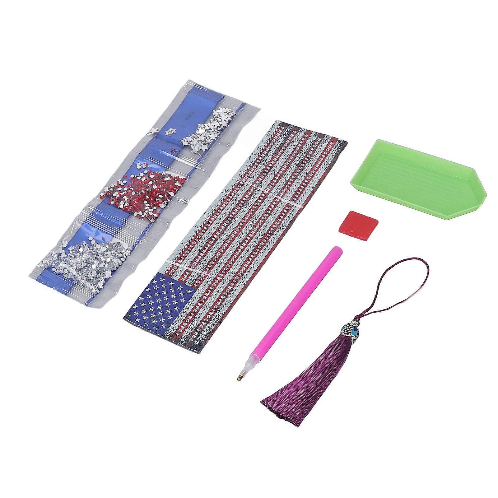 DIY American Flag Rhinestones Painting Bookmark with Resin Gems