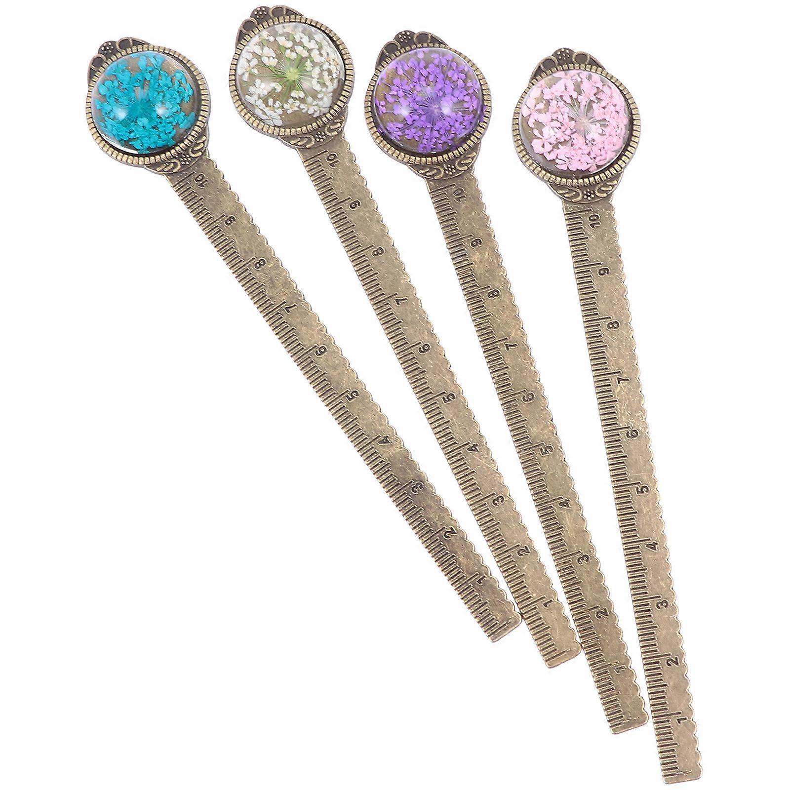 Dried Flower Bookmark Metal Page Marker Zinc Alloy 4Pcs