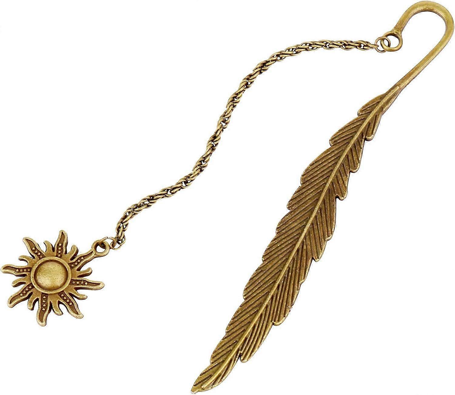 Metal Feather Bookmarks for Kids Girls Women Men Book Marks for Book Lovers Cool Cute Vintage Marker (Sun Fall)
