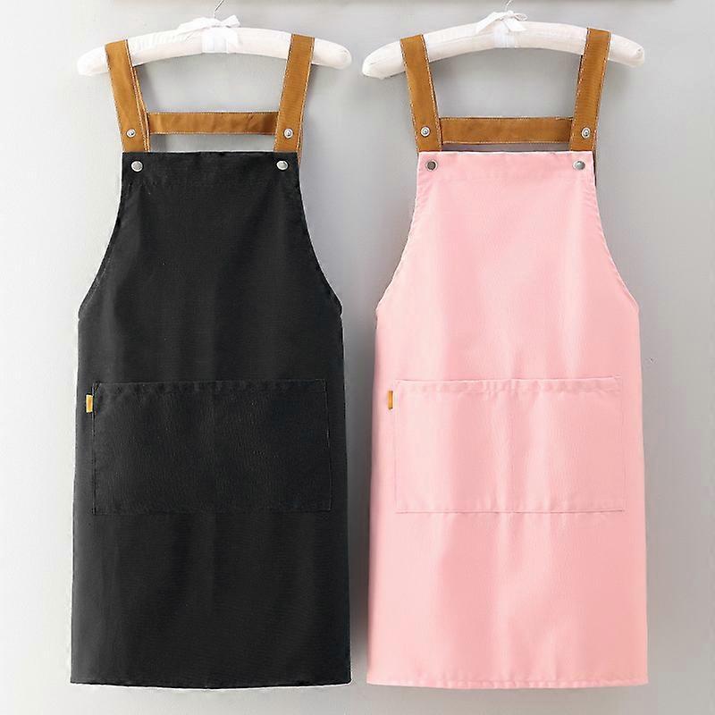 Solid Color Cook Apron for Women, Adult, Durable, Comfortable, Suitable for Kitchen, Bakery, Restaurant, Crafts (Black+Pink),2024 Ping