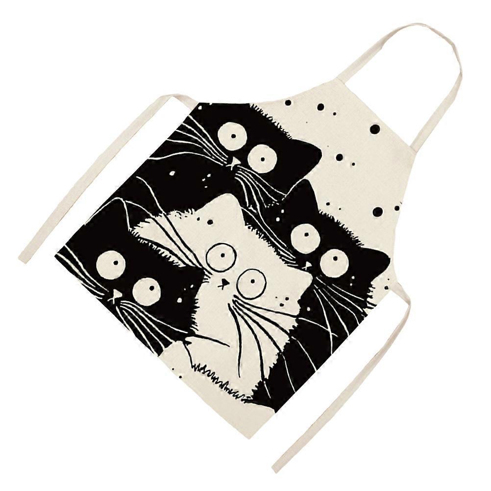 Household Apron Cat Pattern Apron Cooking Kitchen Work Cotton Linen Material Prevent Dirt Splash Proof 1Pcs