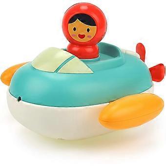 סירת מנוע מהירה נעה עם מדחף אחורי מסתובב, להשפריץ אמבט אמבט לפעוטות