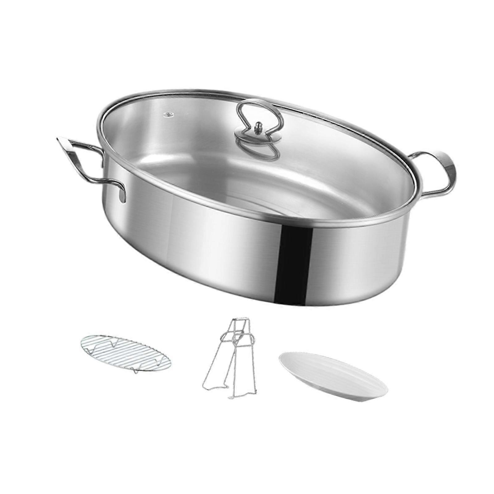 Fish Steaming Pot with Cover Oval Cookware for Eggs Vegetables Coarse Grains with Ceramic Plate