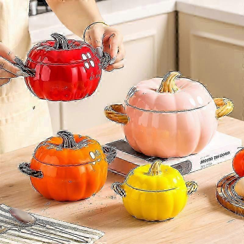 Dutch Oven Pot with Lid, Pumpkin Pottery Dessert Saucepan, Mini Baking Dish Cute Pumpkin Bowl, Covered Dutch Oven Ceramic Stockpot
