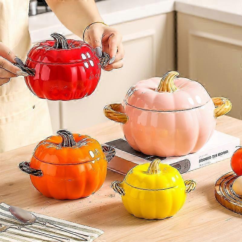 Dutch Oven Pot With Lid, Pumpkin Pottery Dessert Saucepan, Mini Baking Dish Cute Pumpkin Bowl, Covered Dutch Oven Ceramic Stockpot