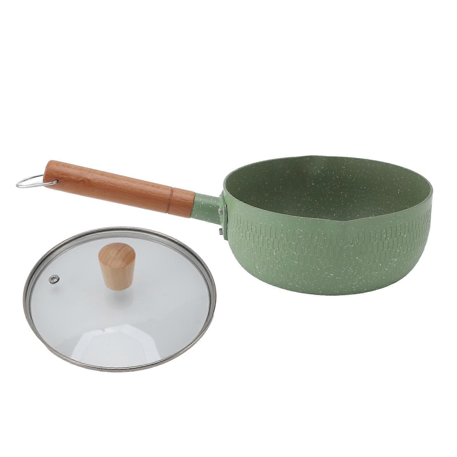 Wooden Handle Milk Pot Aluminum Alloy Multifunctional Flat Bottomed Noodle Sauce Pan for Home Kitchen Restaurant Green with Lid