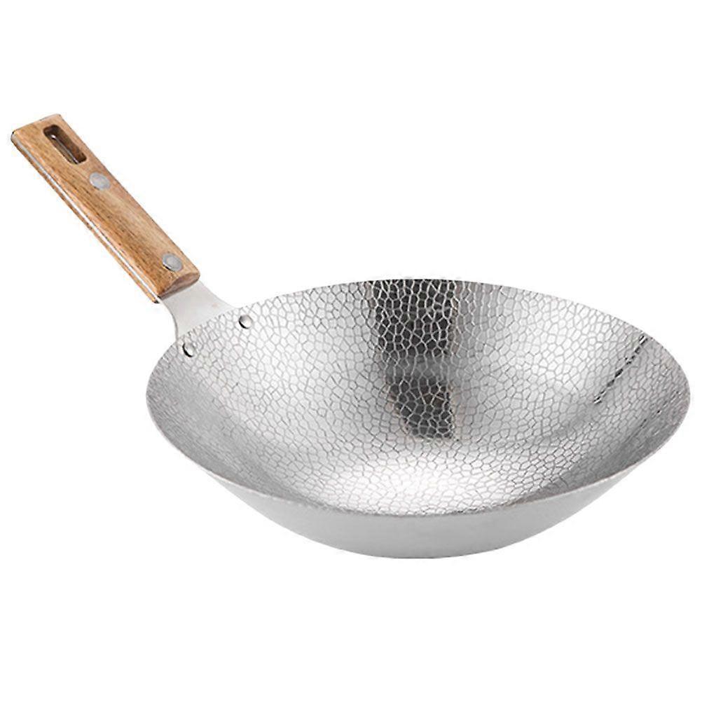 Stainless Steel Wok Household Frying Pan Traditional Pan Restaurant Pot with Wooden Handle
