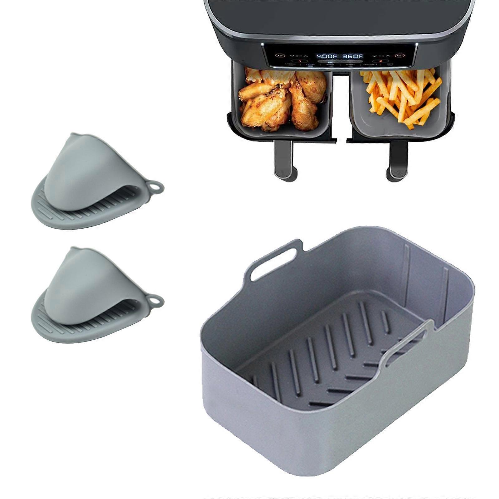 1PC Air Fryer Steam Blue Square Silicone Pot (with a pair of anti-hot clamps), kitchen utensils, food tray,Silicone Air Fryer Pot