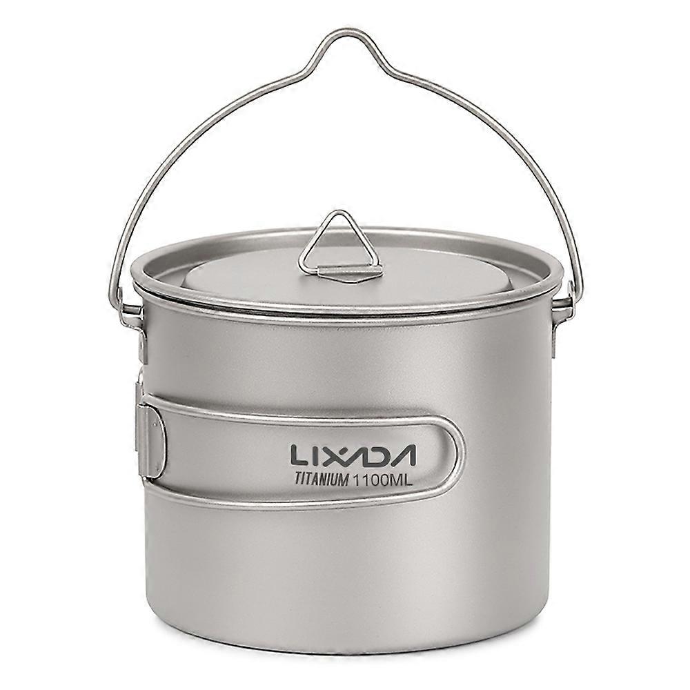Ultralight Titanium Camping Pot 750ml 900ml 1100ml with Lid and Foldable Handle, Durable Outdoor Cooking Water Mug for Hiking Picnic