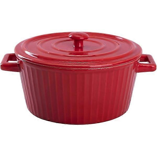 Colorful ceramic pot with lid 1 quart ceramic casserole dish for oven baking, red.