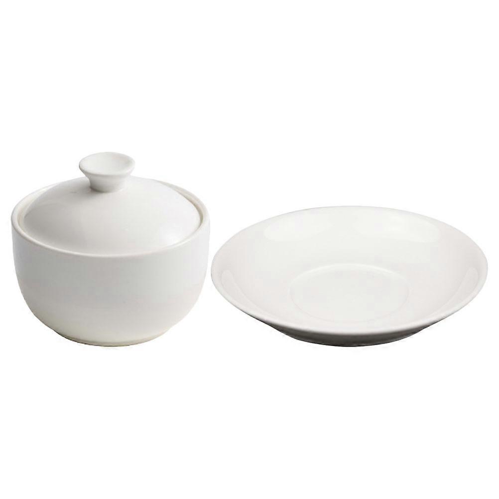 Home Kitchen Ceramic Stew Pot with Lid 2Pcs Steaming Soup Bowl White