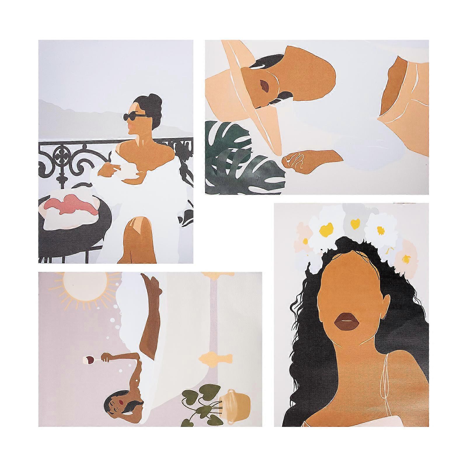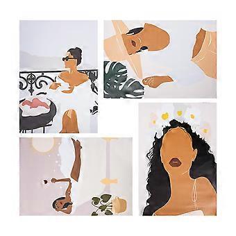 Living Room African Women Canvas Painting Household Wall Decoration Artistic Rectangle 30x20cm Assorted Color 4Pcs