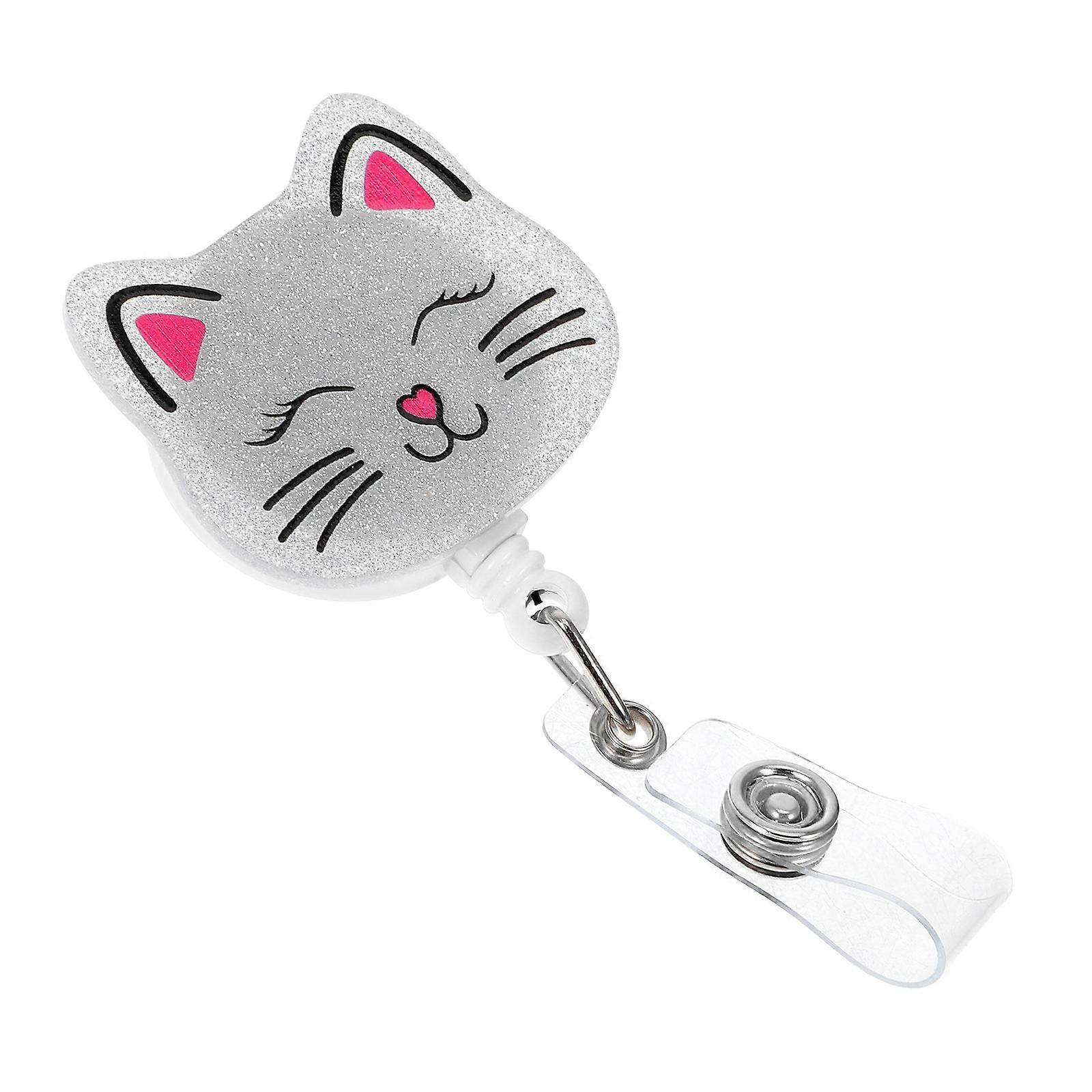 Cute Cat Badge Reel Retractable for Nurse with Clip Silver