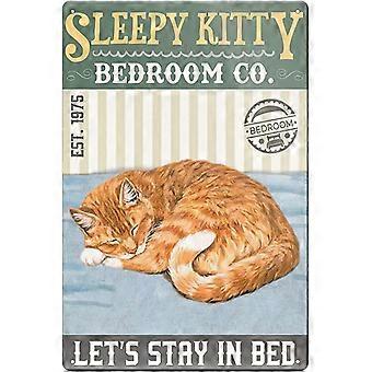Sleepy Kitty Metal Tin Sign Wall Sign Funny Metal Tin Sign Home Vintage Art Decor Iron Painting 8x12 inch