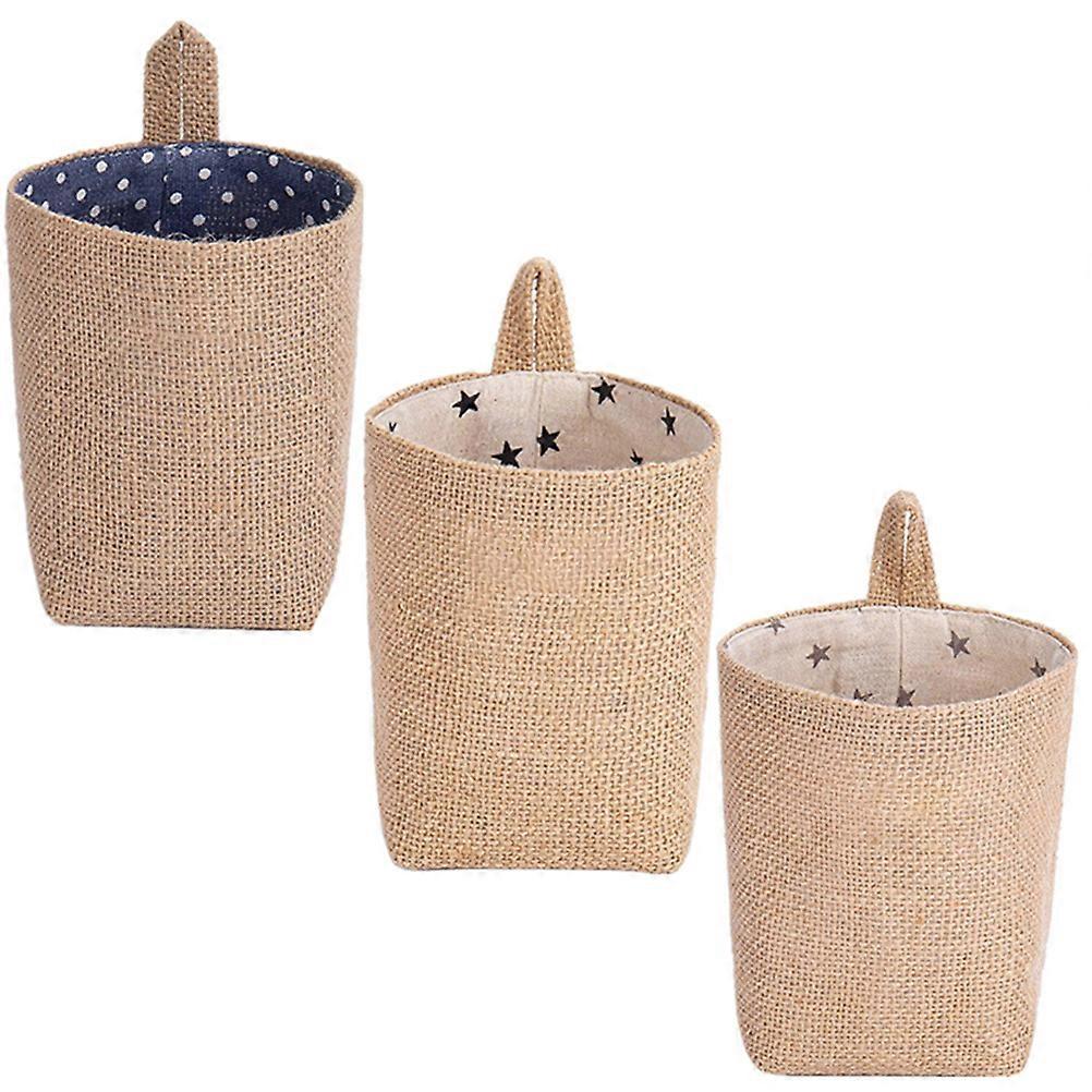 Wall-Hanging Storage Baskets Cotton Linen Organizer Basket Living Room Storage 13.00X12.00X12.00CM 3Pcs