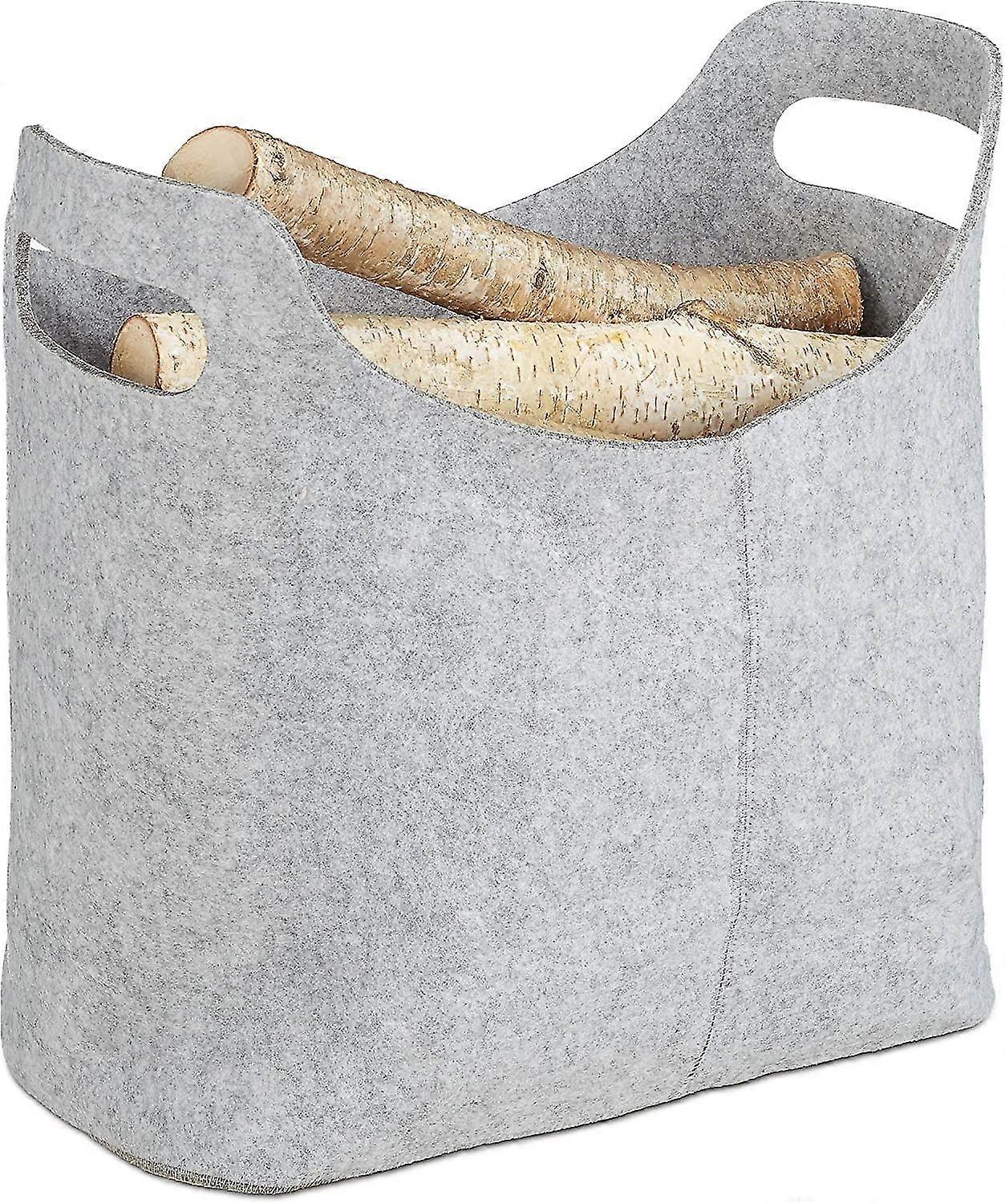 Felt log basket, HxWxD: 40x30x40cm, 2 handles, foldable, magazine rack, gray