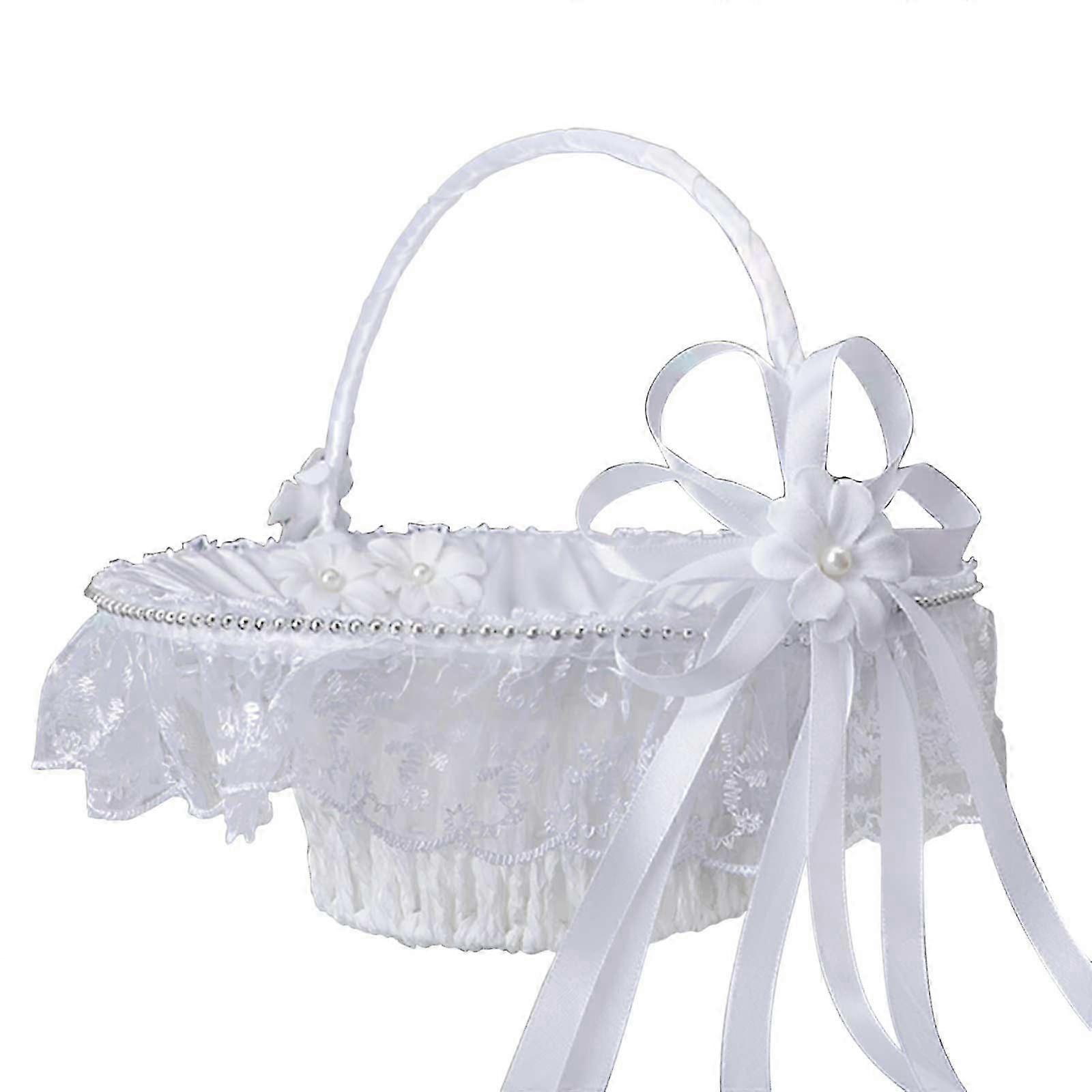 Unique Wedding Flower Baskets, Elegant Wedding Decor With Lace Wedding Accessories For Memorable Wedding Ceremony Party, Flower Girl Basket (25*27cm)