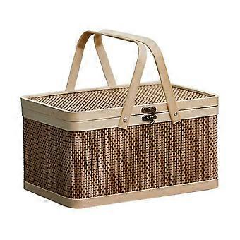 סלסלת במבוק סלסלה ארוגה ידידותית טבעית סלסלת פיקניק מבמבוק עם מכסה חטיפים ידניים ברד סטריט
