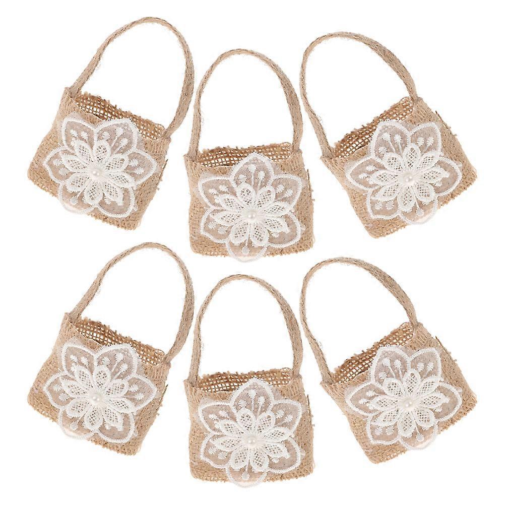 Flower Girls Basket Linen Wedding Decoration Item Mini Basket Multi Favor 3.9×2.4×1.8in 6Pcs