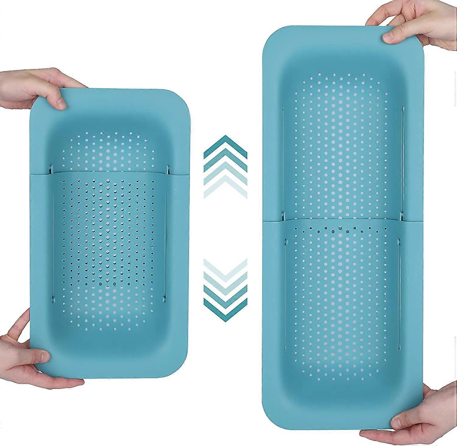 Over the Sink Colander Strainer Basket -Wash Vegetables (7.9 W x 14.5-19.5 L x 2.75 H) - White