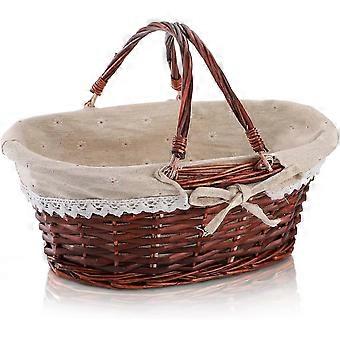Wicker Picnic Basket with Handle, Empty Gift Basket, Easter Basket with Liner, Woodchip Organizer Storage for Fruit, Candy, Wine, Egg Gathering, Wed