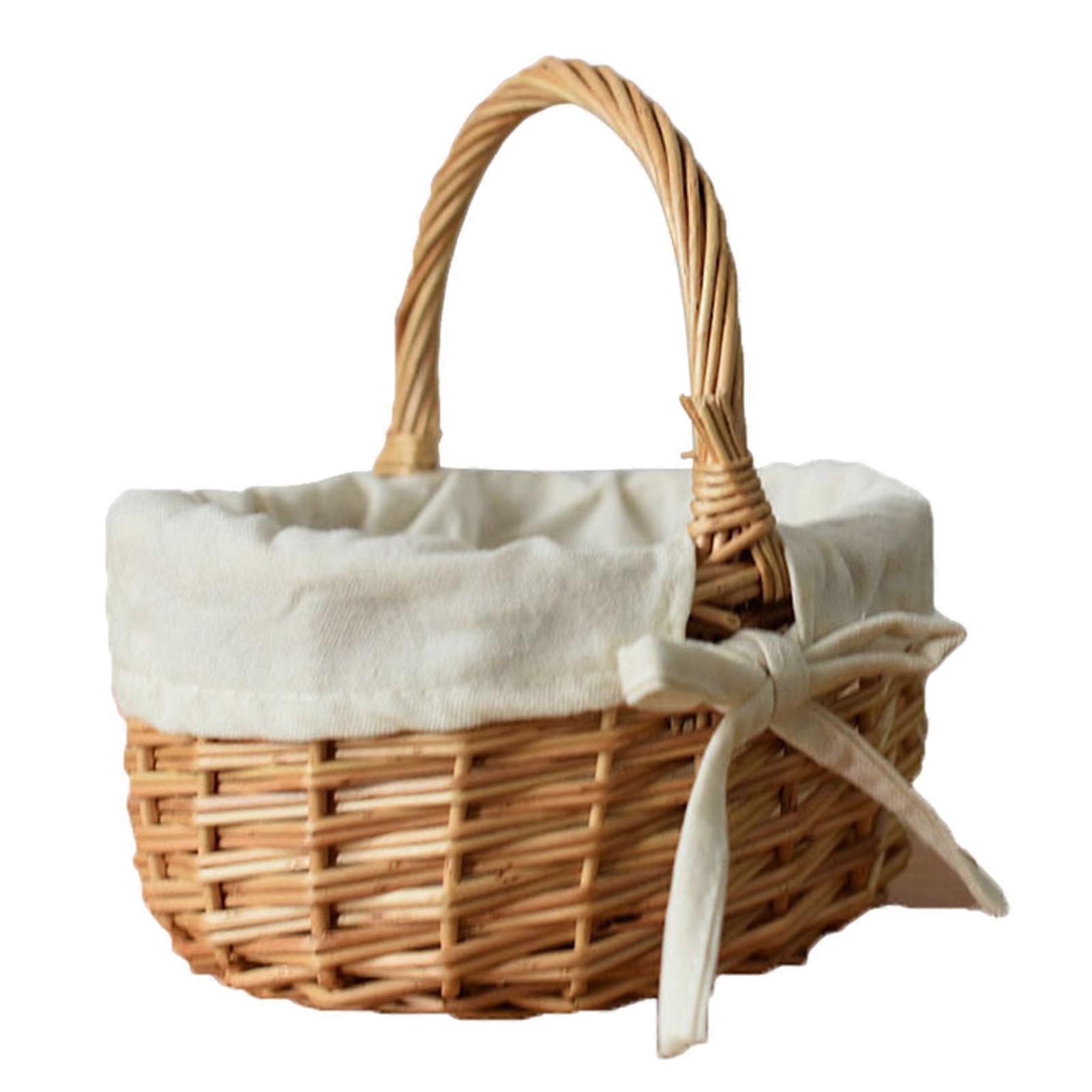 Flower Basket with Handle And Fabric Lining Hand-Woven Great Load Bearing Large Capacity Picnic Camping Basket Easter Gift Wicker Basket Grocery Veget