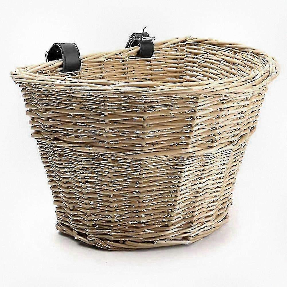 D-Shaped Woven Bike Basket Handmade Rattan Shopping Basket for Bicycle Folk Style Craft Portable Cycling Accessory