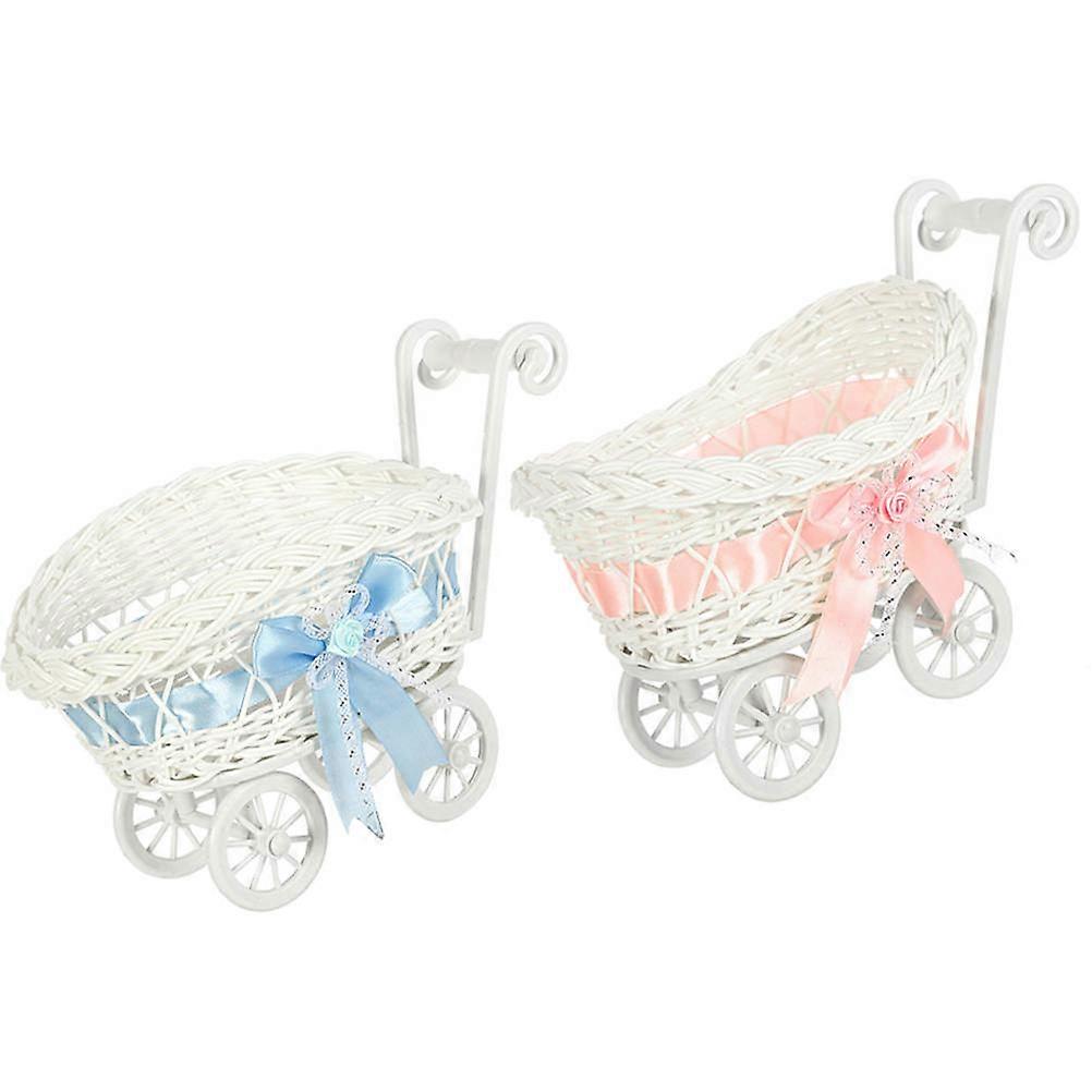 Hand Woven Basket Candy Storage Flower Basket Shape Wedding Party 2Pcs