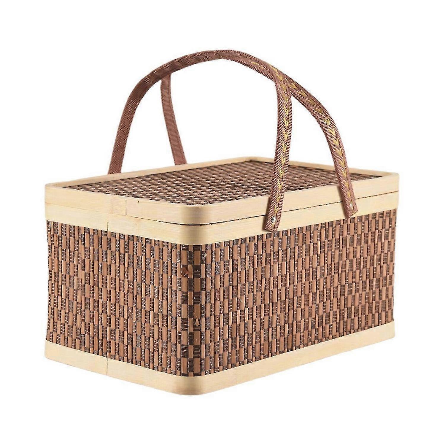 New Bamboo Basket Natural -Friendly Woven Basket Bamboo Picnic Basket