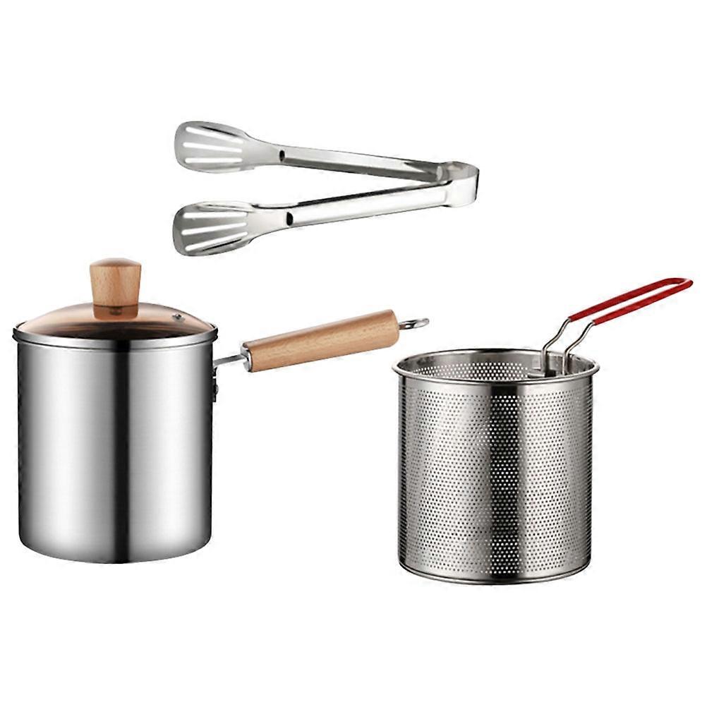 Stainless Steel Frying Pot Fry Basket for Cooking Use 2Sets with Wooden Handle