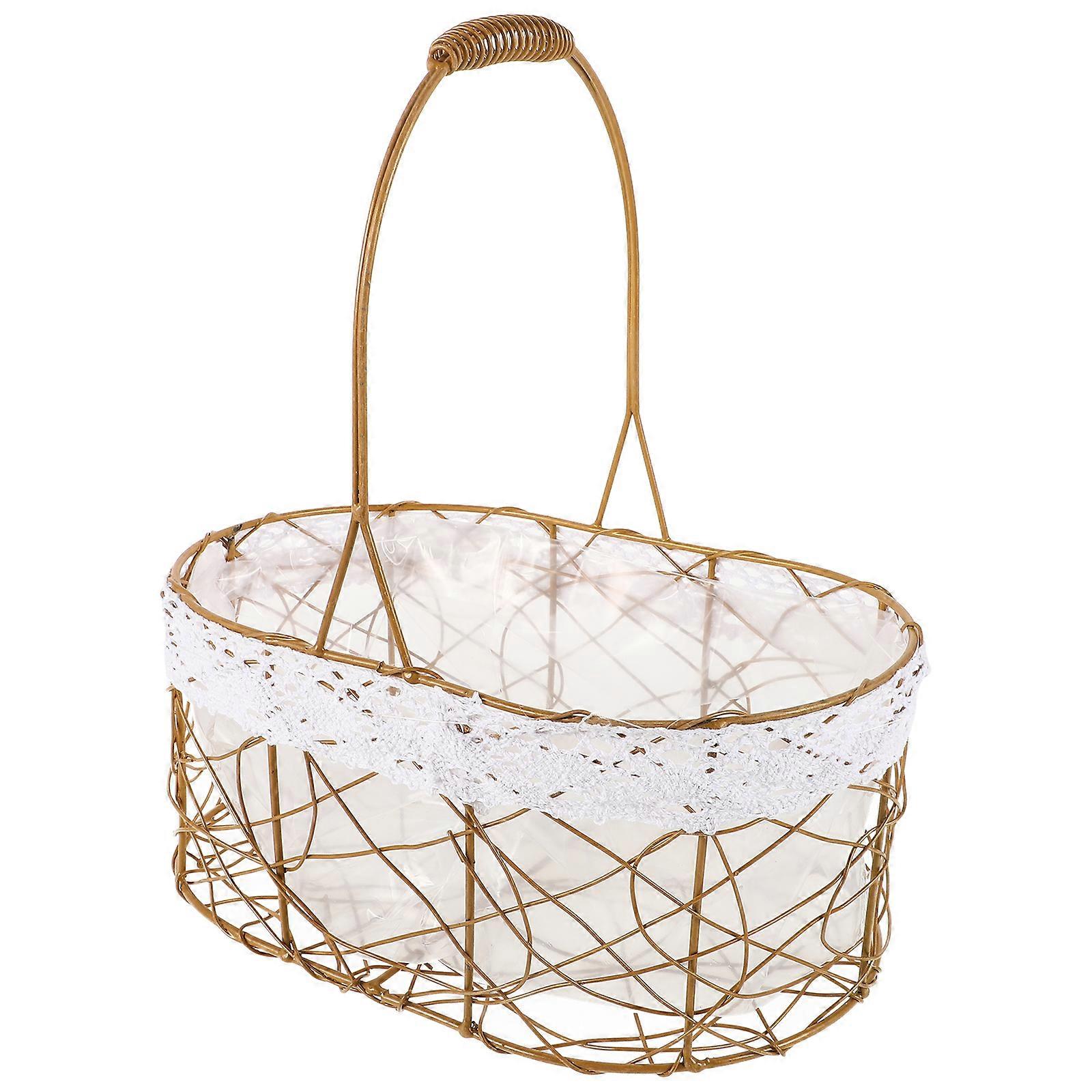 Flower Girl Basket Metal Flower Basket Decoration For Wedding Decor Rustic Charm 11.8×11×7.1in 1Pack