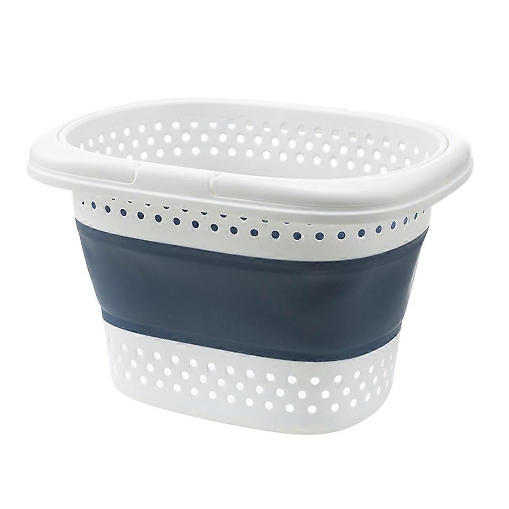 Nordic Style Laundry Basket Foldable Clothes Storage Blue White For Home Hotel Apartment 16.5×12.6×11in Easy Carrying 1Pack