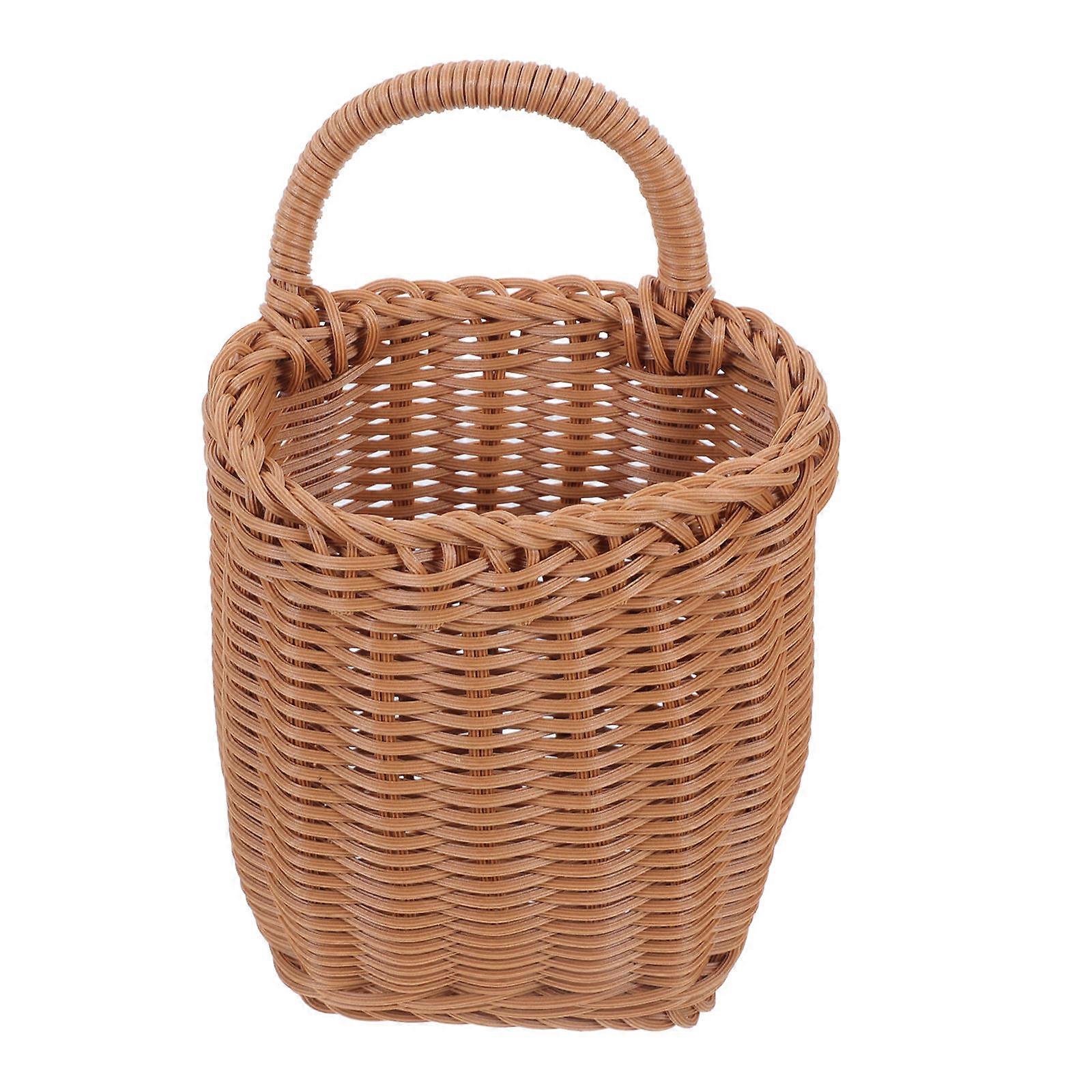 Transform your living space with our versatile rattan hanging basket. It is for kitchens and living rooms, this multi-functional storage solution helps you organize various items effortlessly. The imitation rattan design seamlessly blends with your home decor, adding a touch of elegance and charm to any room. Features -Color:Brown -Material:Plastic, iron -Size:22.50X14.50X9.00cm/8.84X5.70X3.54in -This versatile design is for various rooms like the kitchen and living room, offering a convenient solution for storing a wide range of items. -The imitation rattan weaving seamlessly integrates with any home decor, providing an elegant and stylish touch to your living spaces. -Built to last, this storage basket is robust and can handle heavy loads without losing its shape or integrity over time. -Featuring a wall-mounted design, it maximizes space utilization, helping you keep your home organized. -Not only does it address your storage needs, but it also enhances your home decor, making it a unique and practical addition to any room. Package list: 1 x wall hanging storage basket