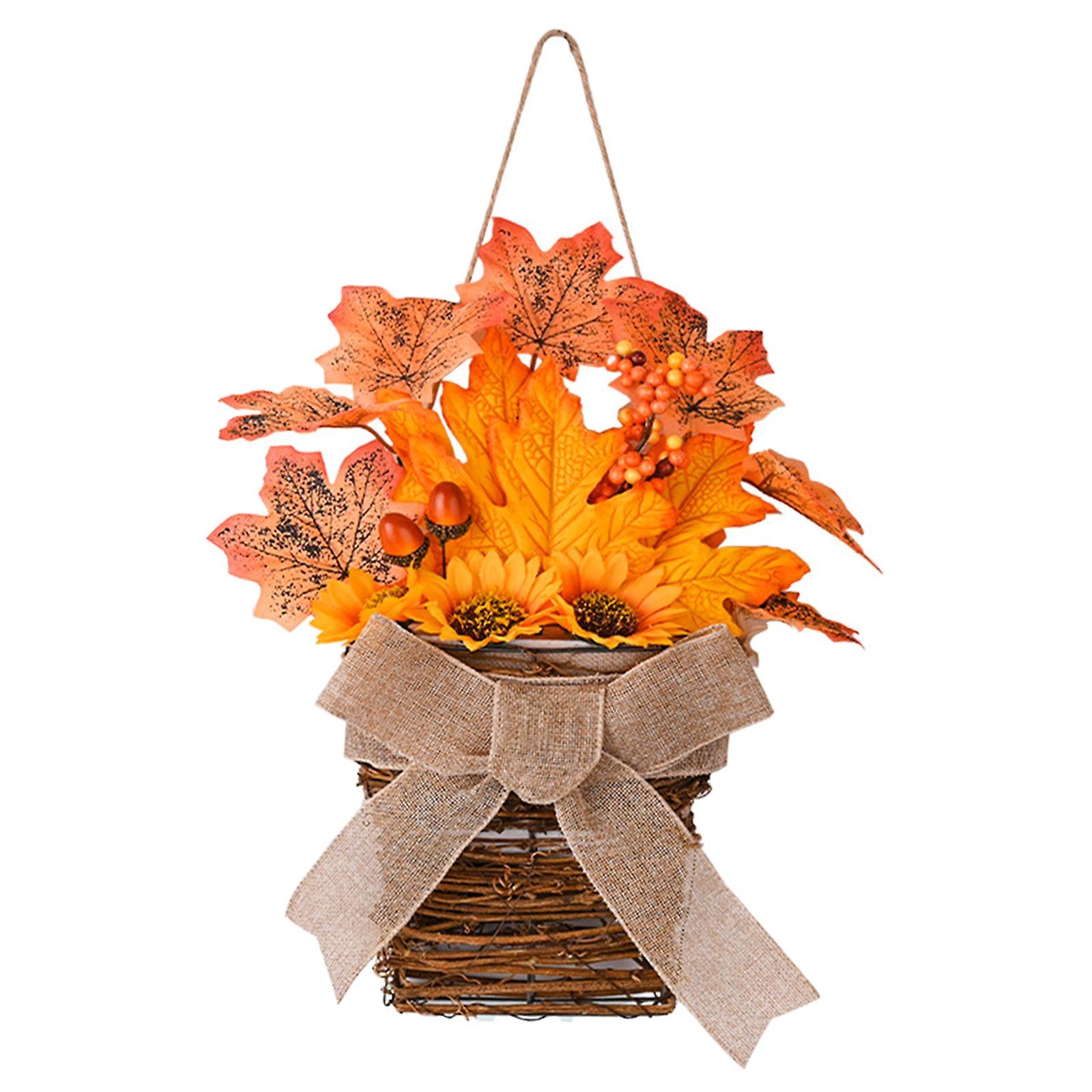 Artificial Maple Leaf Wreath Rattan Basket for Front Doors Autumn Decoration