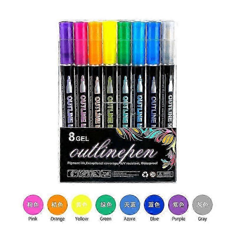 Double Line Outliner Markers Coloring Lightstick Graffiti Pen Metallic Marker 2025