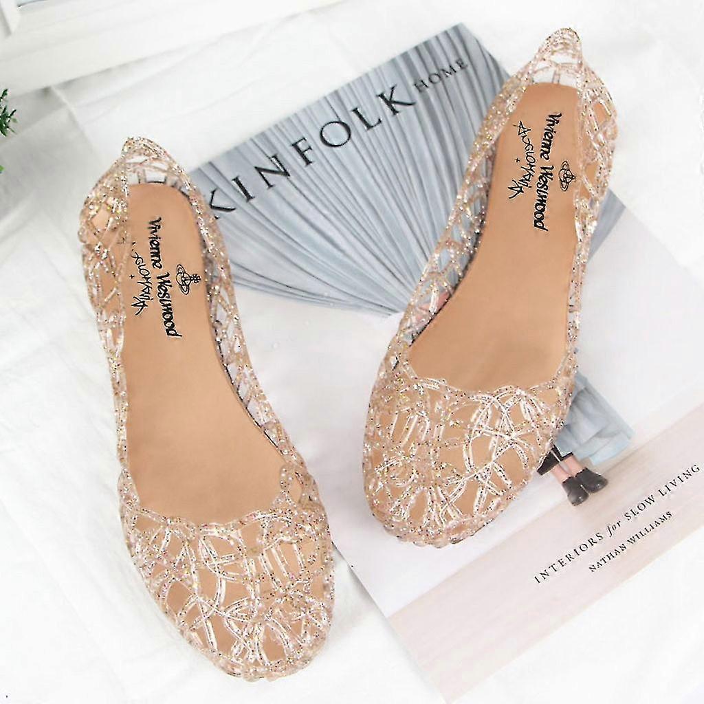 Women's Summer Beach Jelly Sandals Slip On Flats Hollow Casual Breathable Pumps