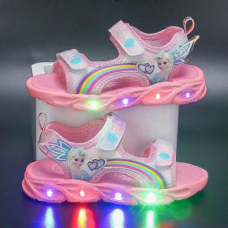Disney Girls' Sandals Summer Children's Led Lightweight Soft Sole Beach Shoes For Girls Children Princess Elsa Pink Shoes