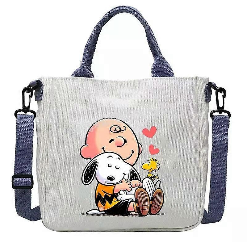 Snoopy Cartoon Cute Print Canvas Totes Bag Large Capacity One Shoulder Package Girl Crossbody Bags Student Carrying Satchel Gift