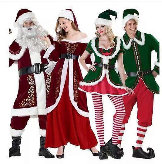 Santa Claus Couple Costume Set Green Elf Christmas Party Outfit for Men Women
