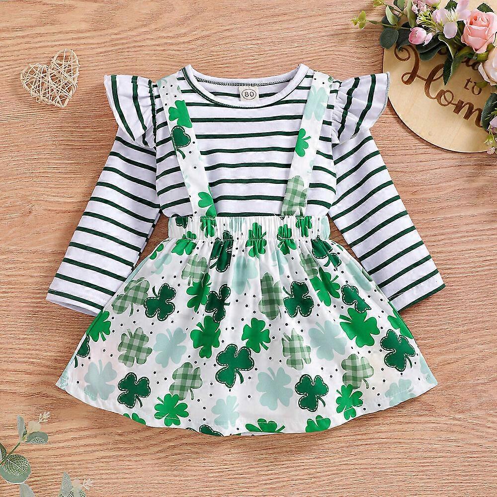 St Patricks Day Toddler Baby Kid Girl Clothes Set Clover T-shirt Floral Skirts