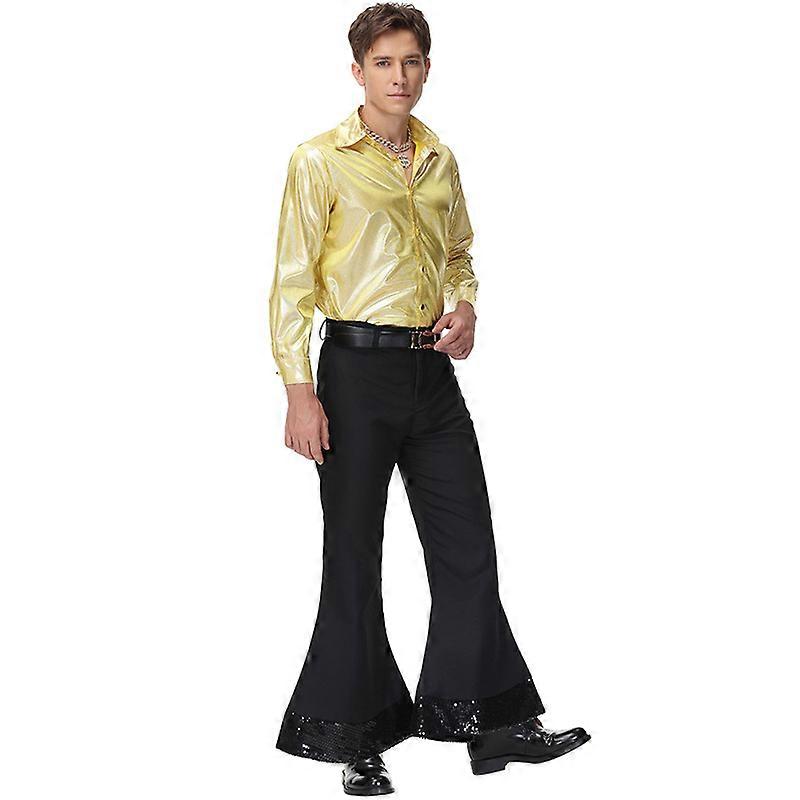 Multicolor Couple 60S 70S Hippy Disco Costume Retro Rockabilly Shiny Shirt Cosplay Carnival Halloween Fancy Party Dress
