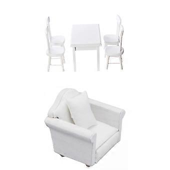 1:12 Scale Modern Sofa with Table Chair Set Home Living Room Scenery Life Scene
