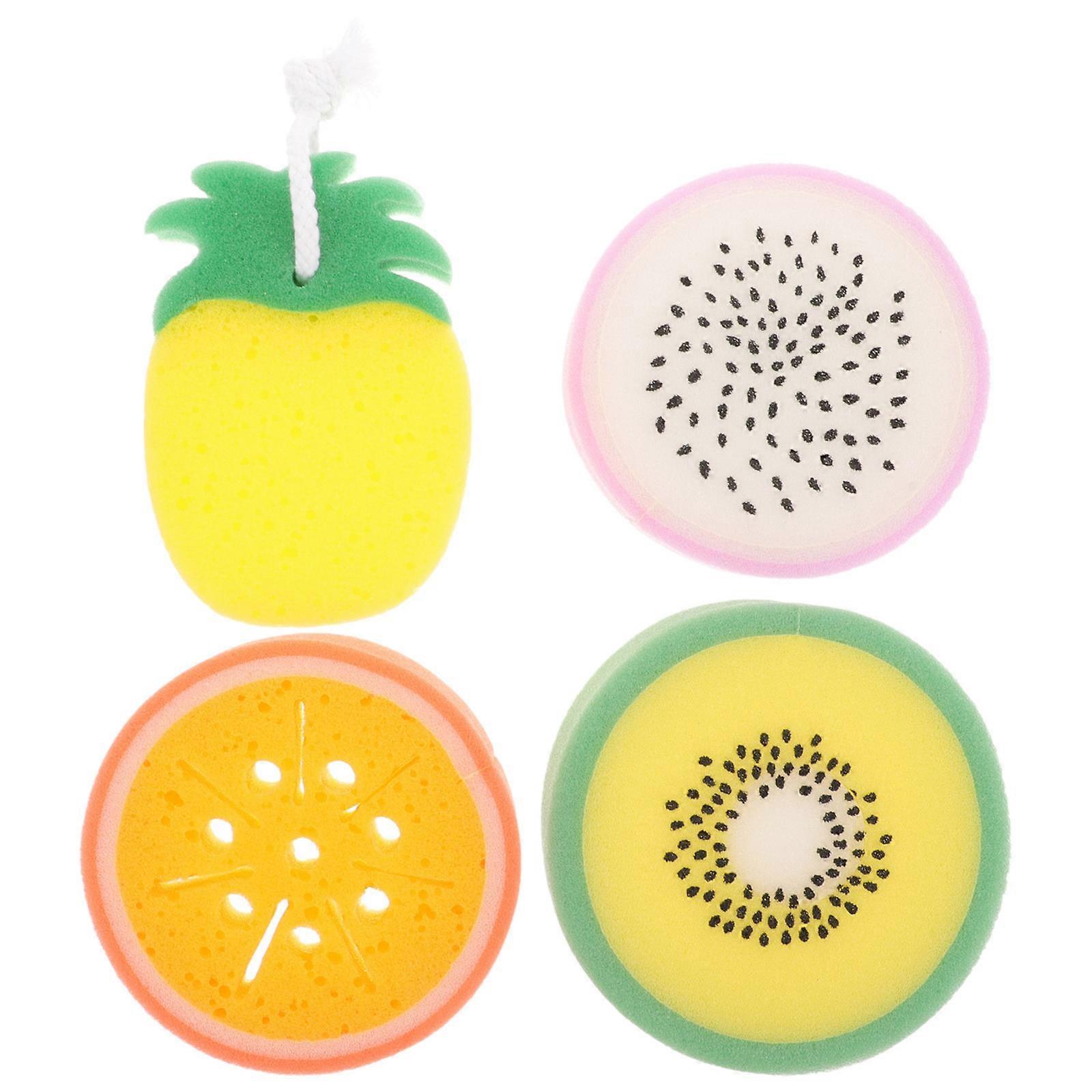 Exfoliating Bath Sponges For Body Fruit Shape Shower Sponge Easy to Clean 4Pcs