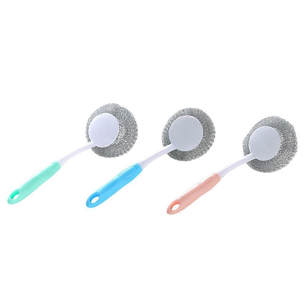 Stainless Steel Sponges with Plastic Long Handle for Kitchen Use Assorted Color 3pcs