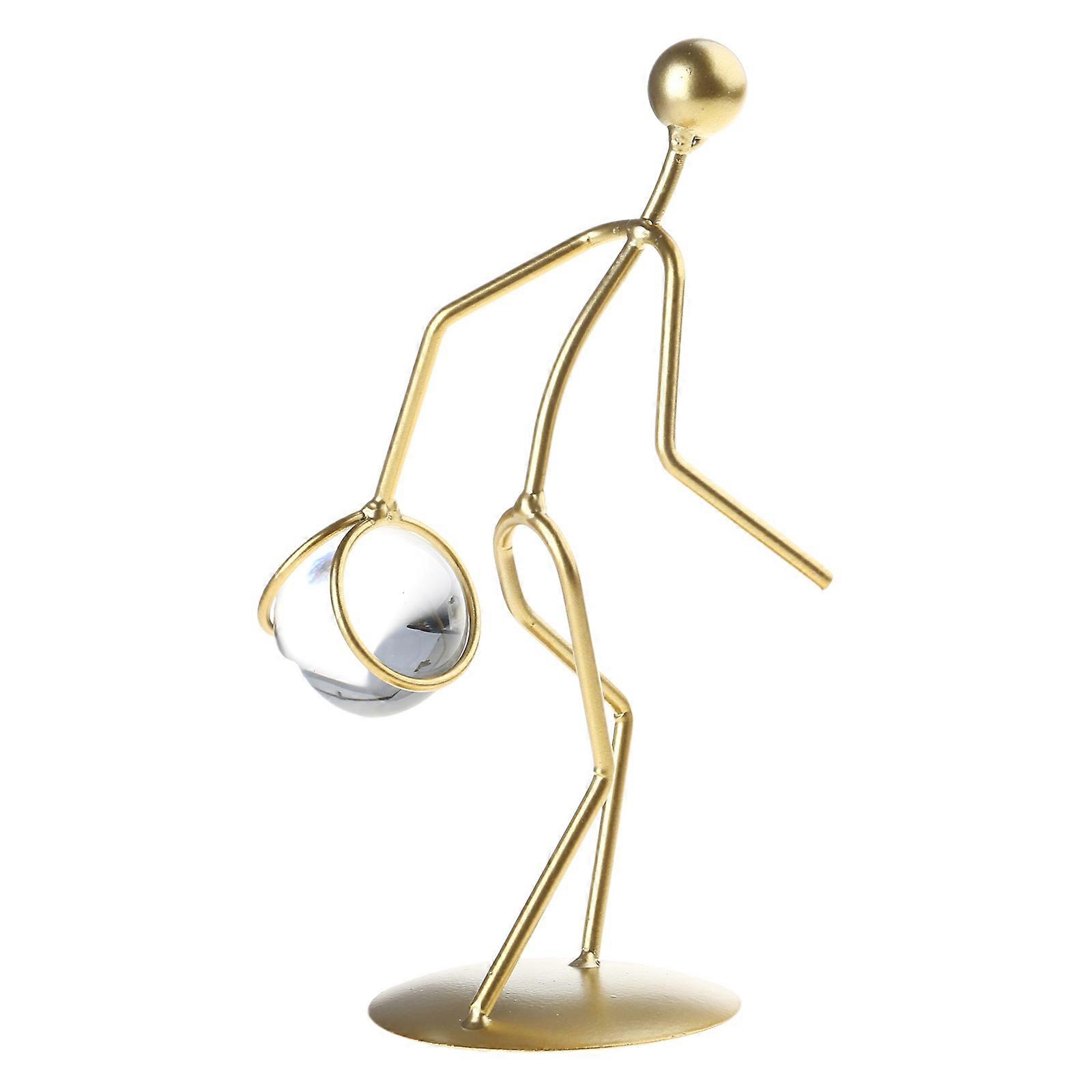 Athlete Crystal Ball Figurine Geometry Man Statue Metal Art Ornament Crafts for Home Children Room Office Tabletop