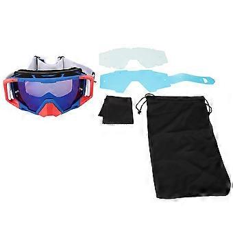 Sports Motorcycle Riding Protective Goggles Windshield Anti Fog Eye Glasses (blue&red)YMQX)