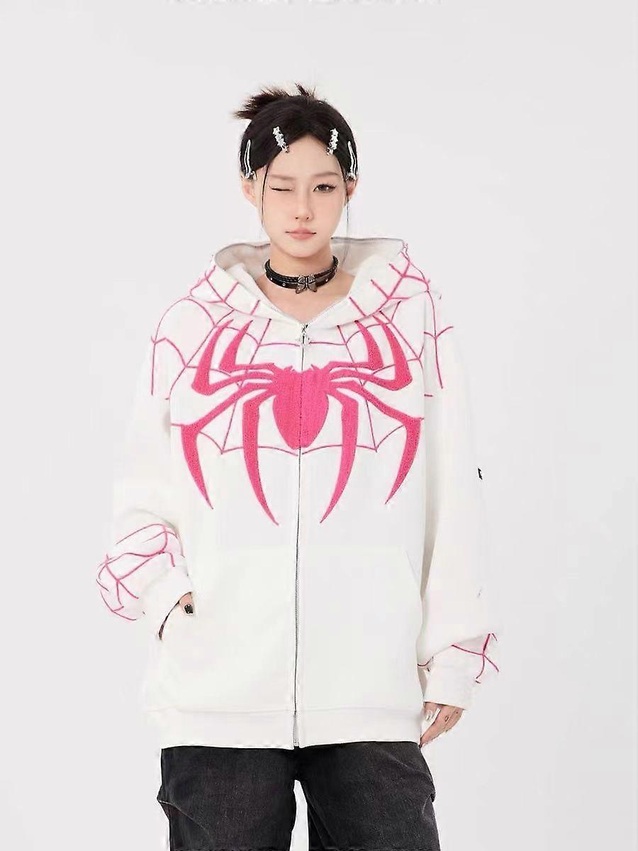 Spider-Man Retro Print Hooded Sweatshirt Women Fleece Lined Zip Up Jacket