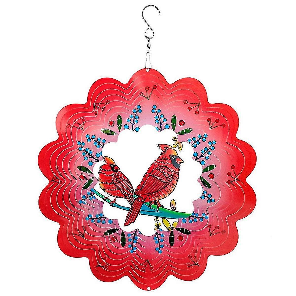3D Wind Spinner Redbird 12Inch Garden Laser Cut Hanging Wind Spinners Metal Kinetic Art Deco Indoor/Outdoor Decor