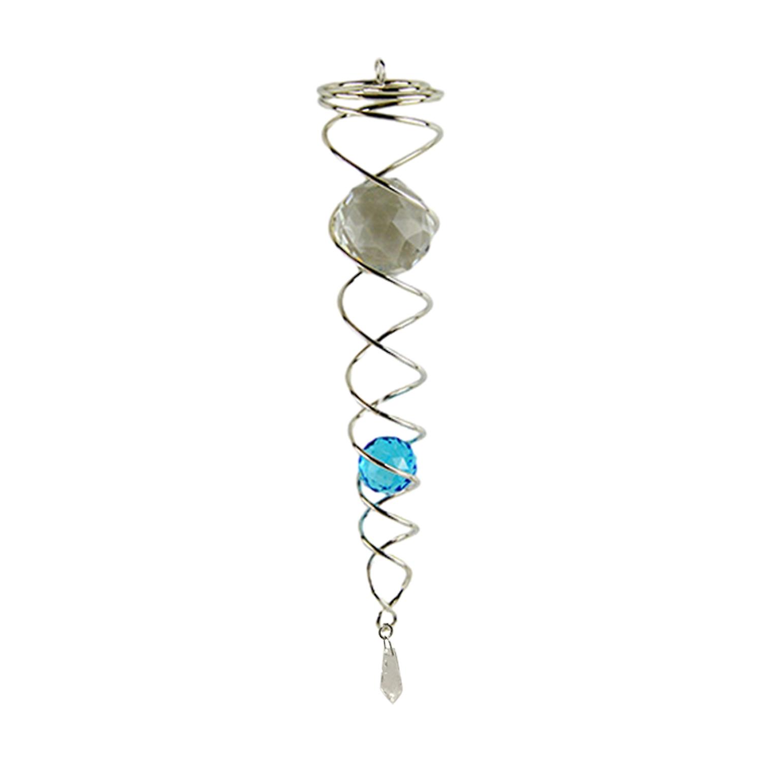 Lake Blue Wind Spinner with Crystal Glass Balls, 12 Inch Outdoor Hanging Decor