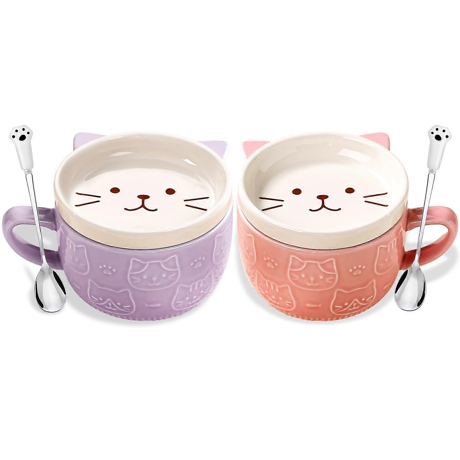Kawaii Cat Coffee Mugs with Lids, Funny Novelty Cat Coffee Ceramic Tea Cup, Cat Gifts For Women Christmas Birthday Gifts